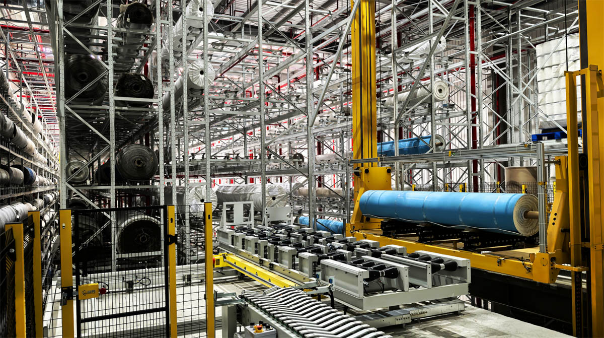 鸿成集团全域智慧工厂以全智能化【一毯一位】立体全自动化智能仓库为基地核心,配合 AGV 无人搬运系统、RGV 无人轨道车、全自动 EMS 葫芦等设备,结合鸿成自主研发的 ERP 系统,MES系统与 WMS 仓储管理系统的实时无缝数据交互,将生产基地的各个车间,工位,仓储及每个角落通过有形与无形的连接织入一张物联网。【一毯一位】的模式从源头确保地毯在工厂生产中 “毯不落地”、“毯不挤压”最大限度保障产品洁净与完好;同时为每卷地毯配备 RFID 专属标签,标签内完整记录产品全周期信息与实时质量监控数据,从生产到交付全程精准溯源,彻底杜绝错毯问题。鸿成 HC FLOOR 以智能化技术重塑了地毯生产的品质标准,这不仅是数十年来战略坚持的成果,更标志着品牌从 “制造” 向 “智造” 的深度跃升。